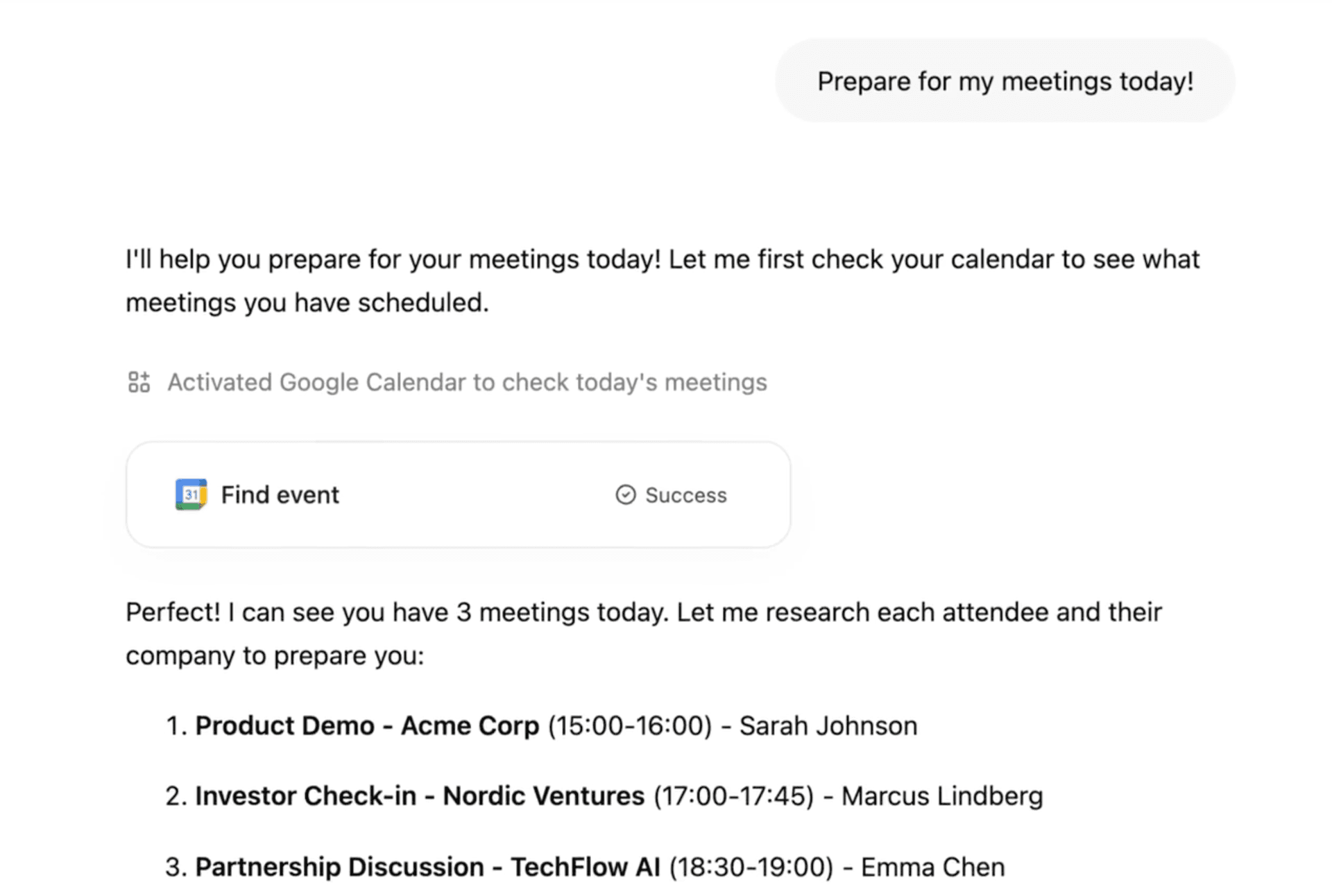 Sally will check your calendar for your next meeting and do extensive research online about the person you are meeting with.